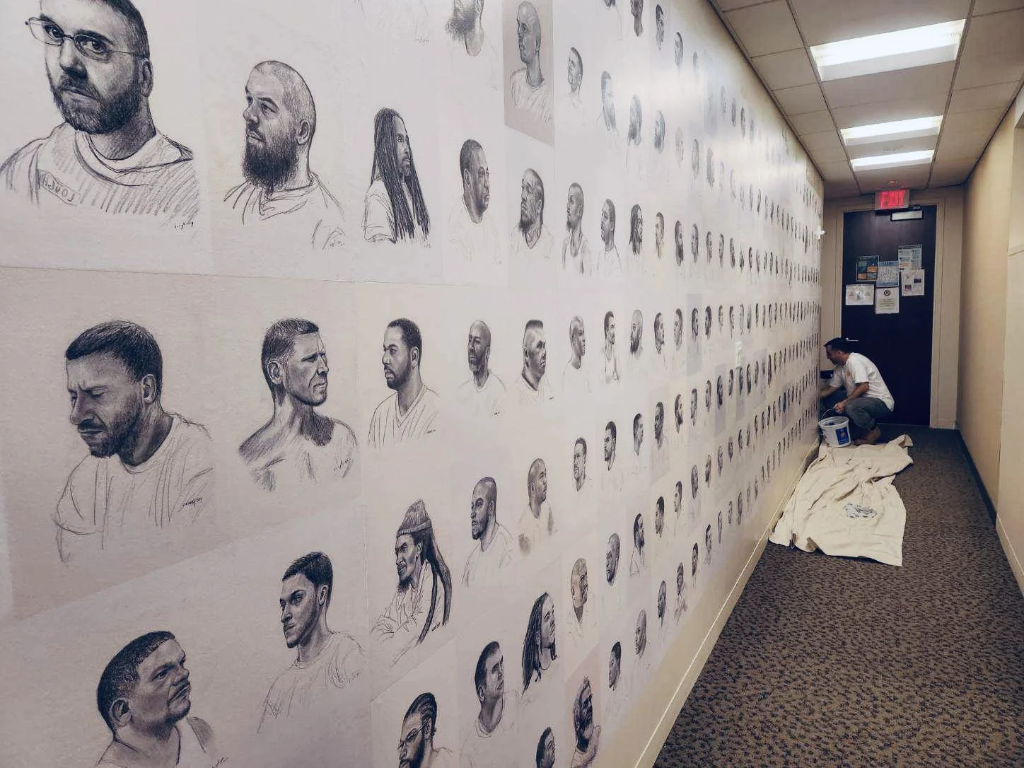 In the next chapter of Pyrrhic Defeat: A Visual Study of Mass Incarceration, Mark will draw 800 portraits of people who support changes to the criminal justice system. This continuation of the series will be exhibited alongside the original 771 portraits of incarcerated individuals.